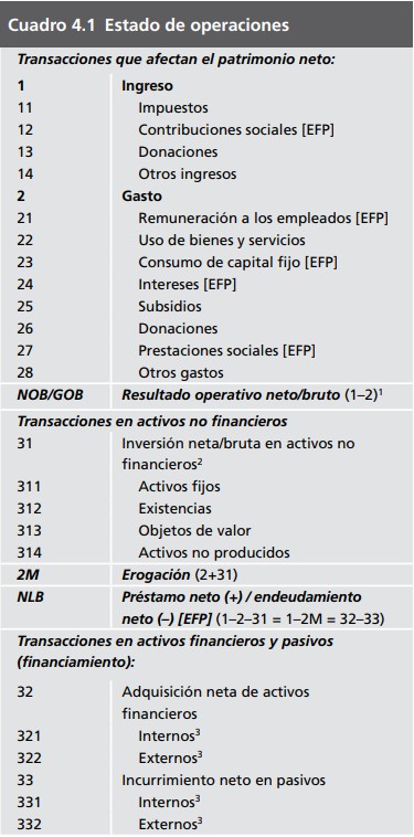 El estado de operaciones resume las transacciones de un sector o subsector. Ofrece una vista integral del impacto de las transacciones en el patrimonio neto y en la composición de los activos y pasivos, durante un período determinado de declaración.
