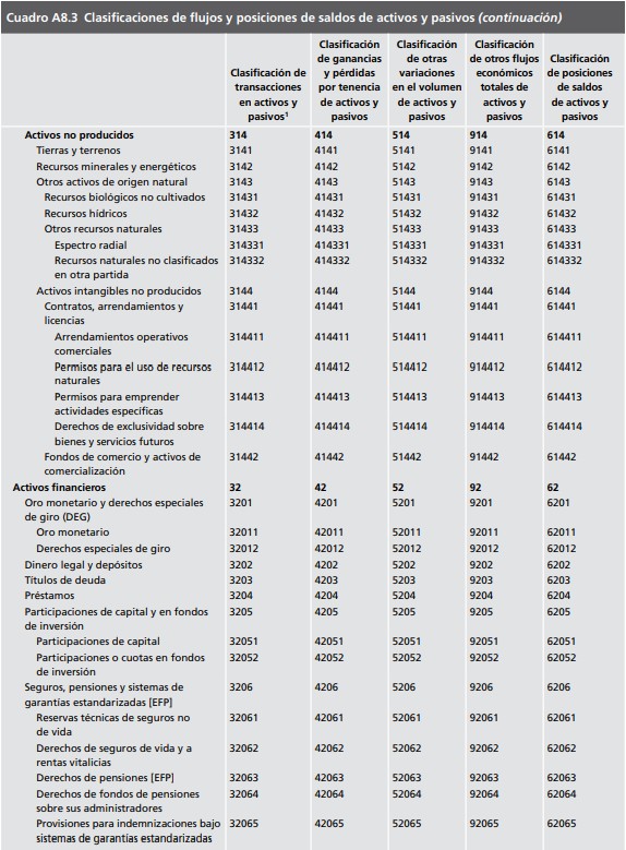 Otros flujos económicos: otros flujos económicos totales usan el número 9 como primer dígito de sus códigos.