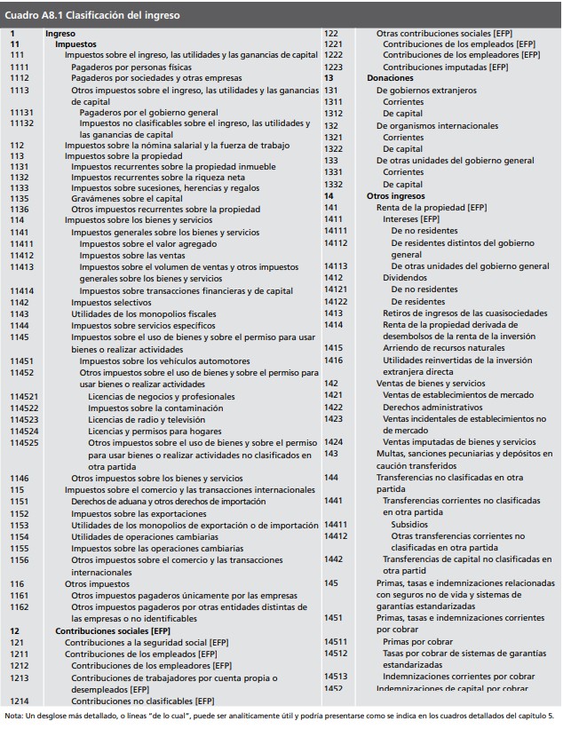 Fuente: Manual de Estadísticas de Finanzas Públicas 2014 del FMI (MEFP 2014)